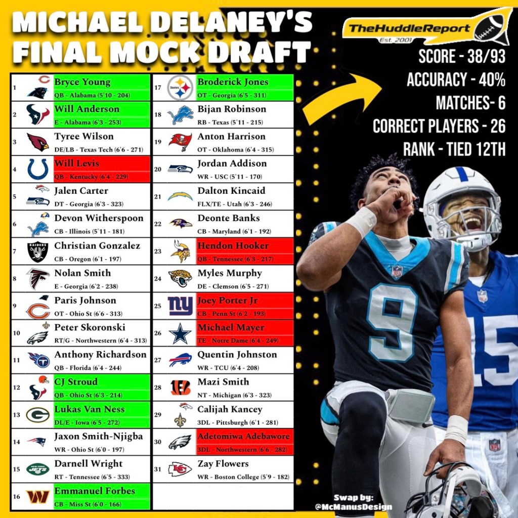 Mock draft accuracy (last 5 years): 41.09% (24th most accurate)