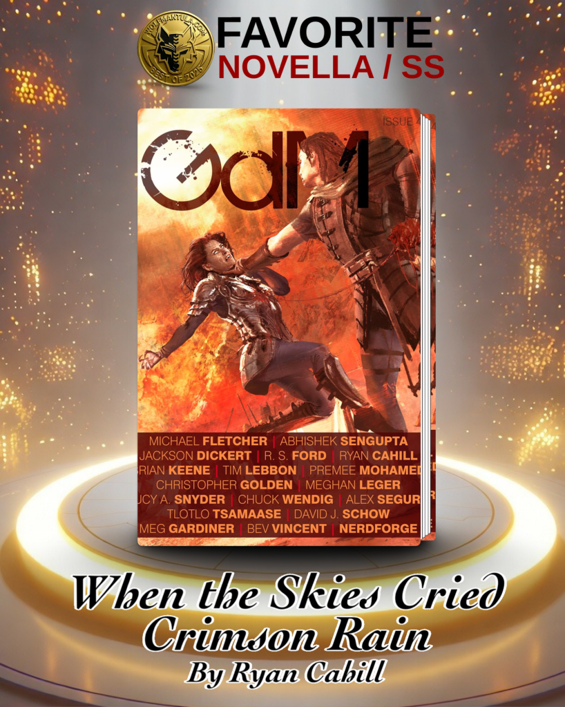 This is technically a short story, but I’m going to include it in the Novella section regardless. I love everything by Cahill, so it’s no surprise that I would put this story here. When the Skies Cried Crimson Rain is a completely new story outside of the Bound and the Broken world, and is a howling masterclass in short-form fantasy, blending gore, horror, and heart. This standalone short story, that I hope ends up being part of a new series, drops us readers into a war-ravaged world where the main POV, Markan, is a Varkin warrior blessed by the wolf-god Varkin.
