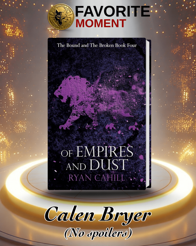 Yeah, we’re doing it again! Cahill not only delivered my favorite villain, but also my favorite protagonist! My favorite character of The Bound and the Broken is and always will be Dayne Ateres, but I have to give credit where credit is due, and admit that Calen deserves this award. His growth and everything he has to deal with in this story made it too difficult to not choose him.